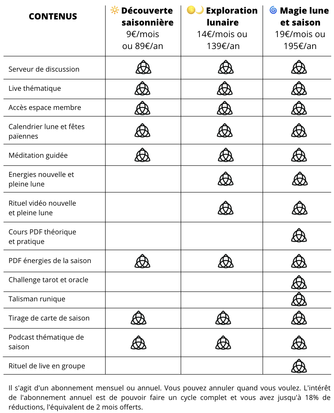 🌀 MAGIE LUNE ET SAISON 19 €/mois (ou 195 €/an) :